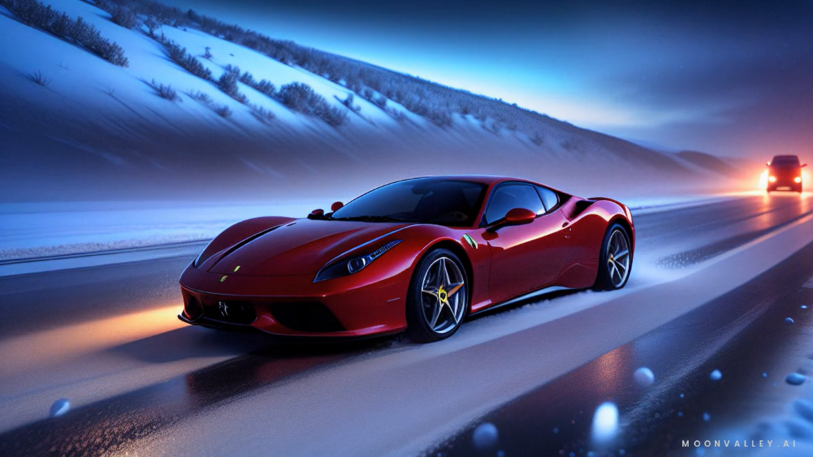 폭설이나 얼어붙은 빙판길에서 30km이상 속도일 경우 스노우체인은 독일 수 있습니다. / Playgroundai.com