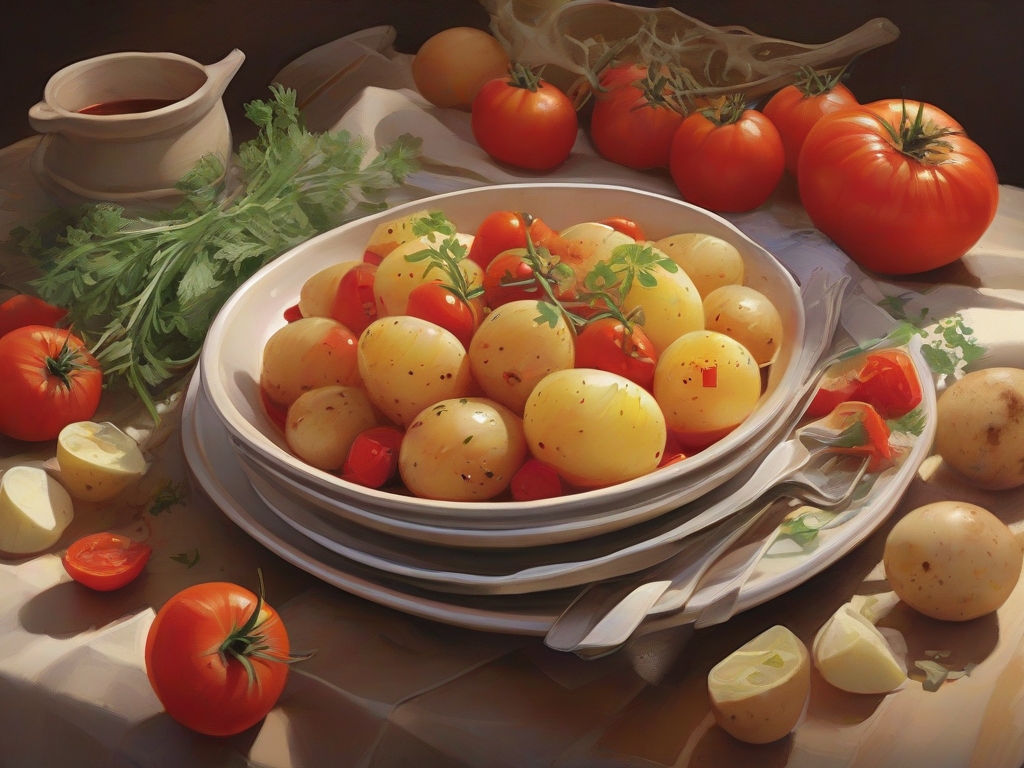 - 삶은 감자와 토마토는 함께 조리하면 맛있는 궁합을 이룰 뿐만 아니라, 토마토가 비타민 C를 제공해 줍니다.
