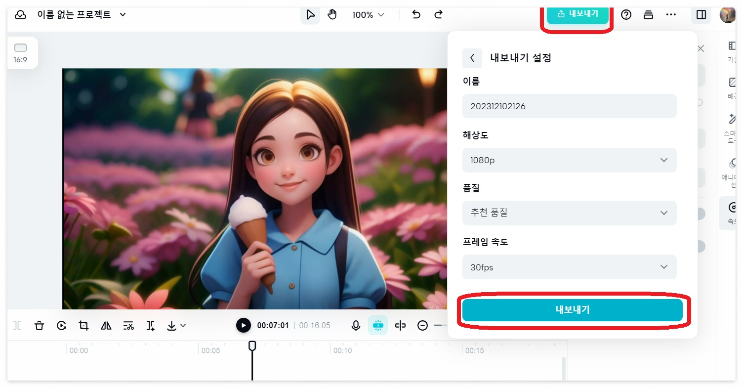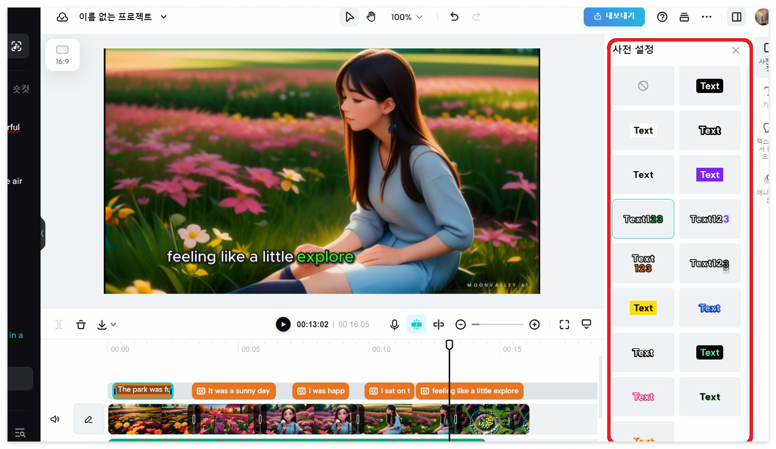 자막에 효과를 입히고 상단 내보내기를 통해 최종 동영상을 완료할 수 있었습니다. CapCut 오디오를 통해 배경음악을 골라 설정하셔도 됩니다.