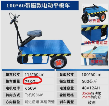 전기 리어카 전동 구루마 핸드카트 운반차 카트 수레 충전식 핸드카 "kg"