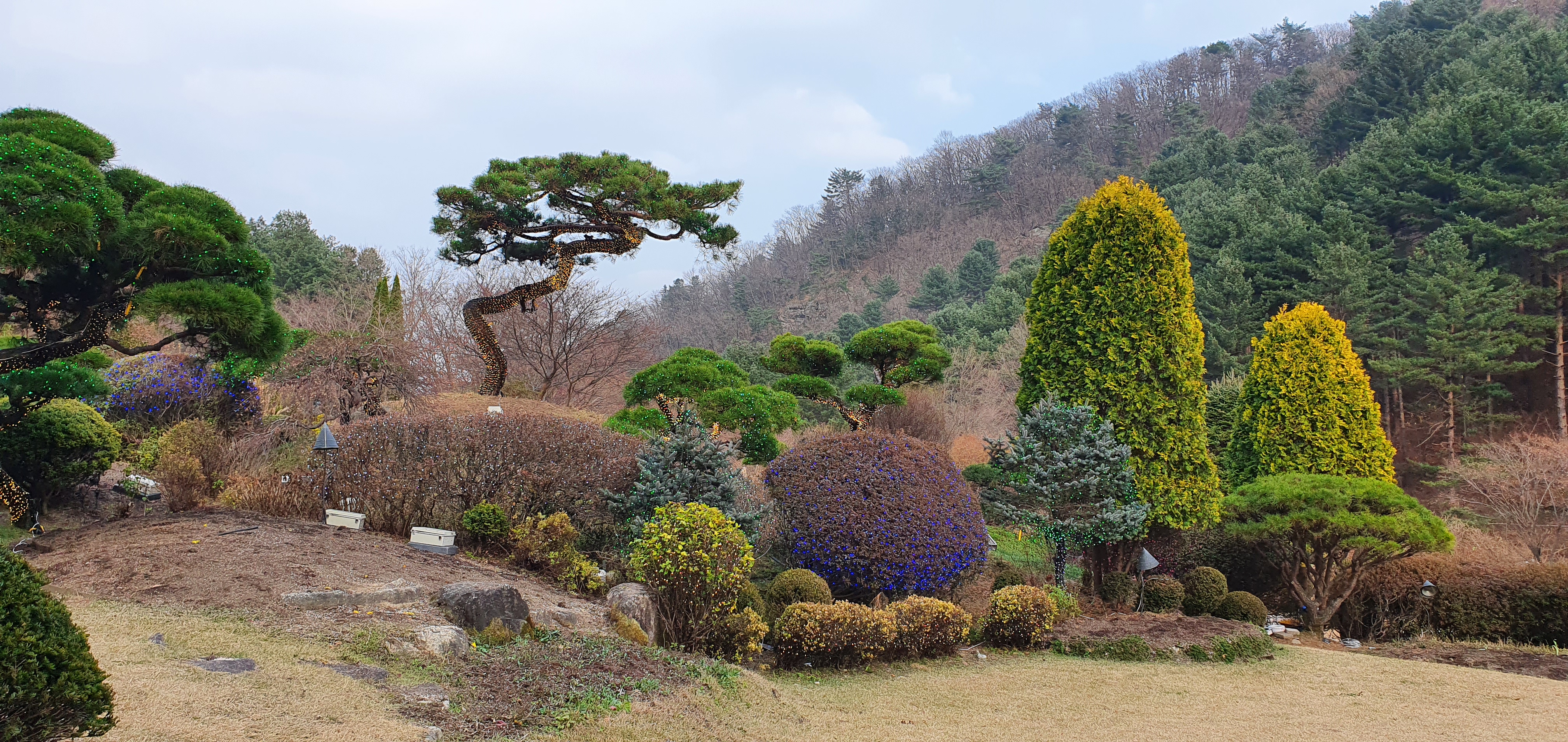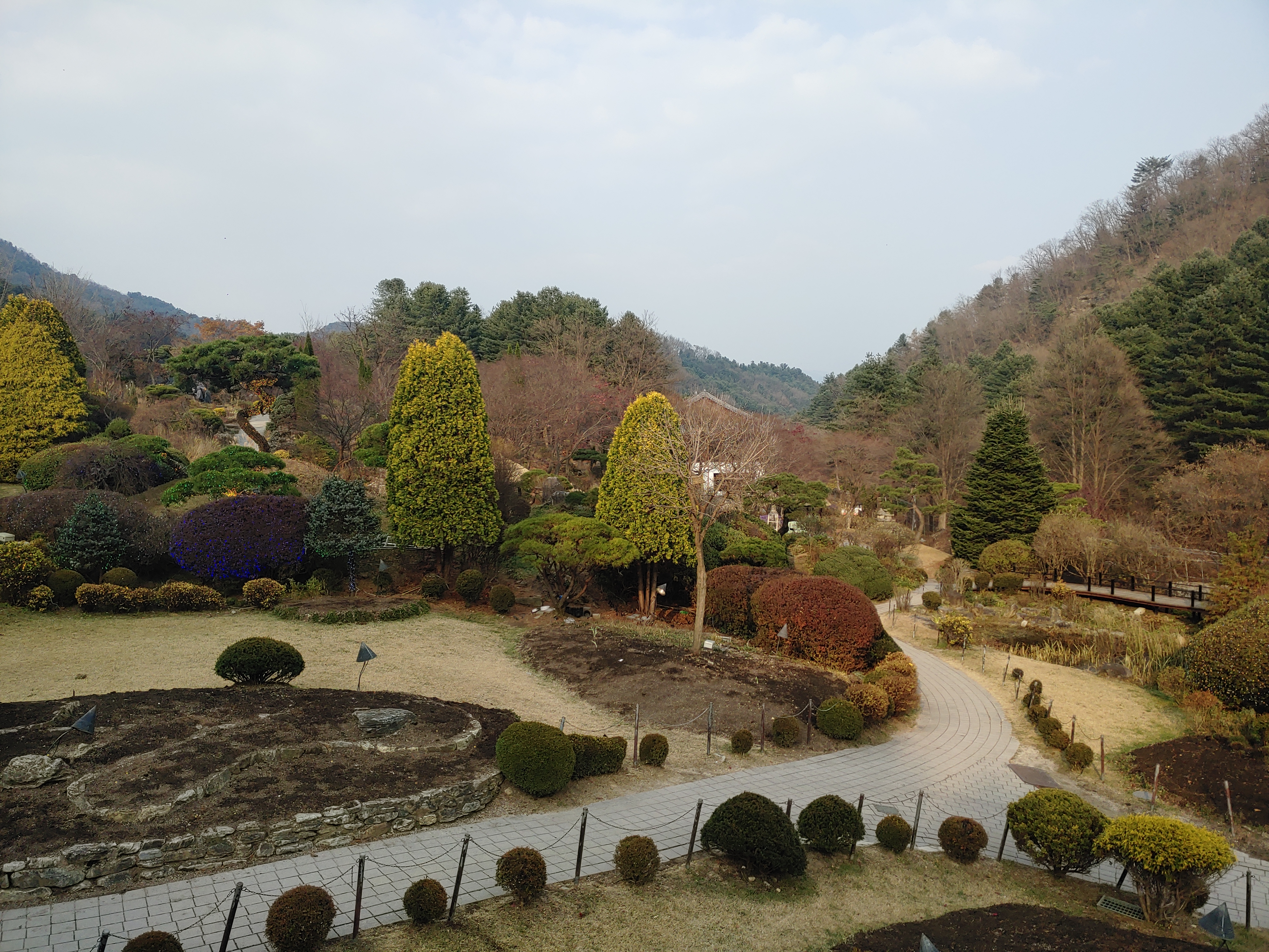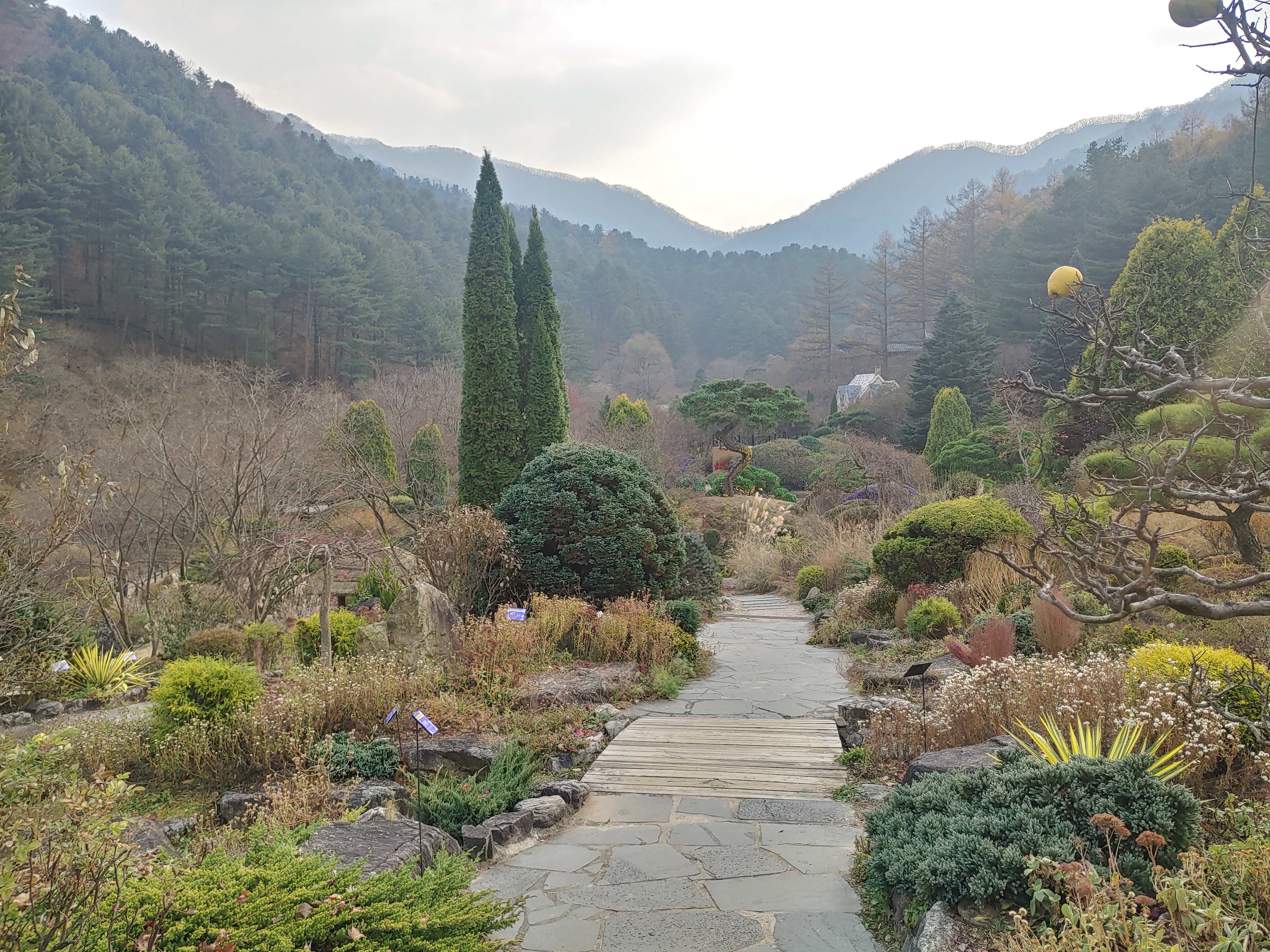 날씨가 좋지는 않았지만 내부는 깔끔하고 관리가 잘되어 있어 산책하기도 매우 좋은 곳입니다. 그리고 꽃이랑 단풍을 볼 수 있었다면 더욱 좋았을 것입니다. 그리고 12월에 볼 수 있는 오색별빛정원과 눈이 내리는 아침고요수목원은 매우 아름다울 거라고 생각됩니다. 11월 중순에 찾아간 아침고요 수목원은 다소 아쉬웠고 공사 중이라 못 가는 데도 있었습니다.