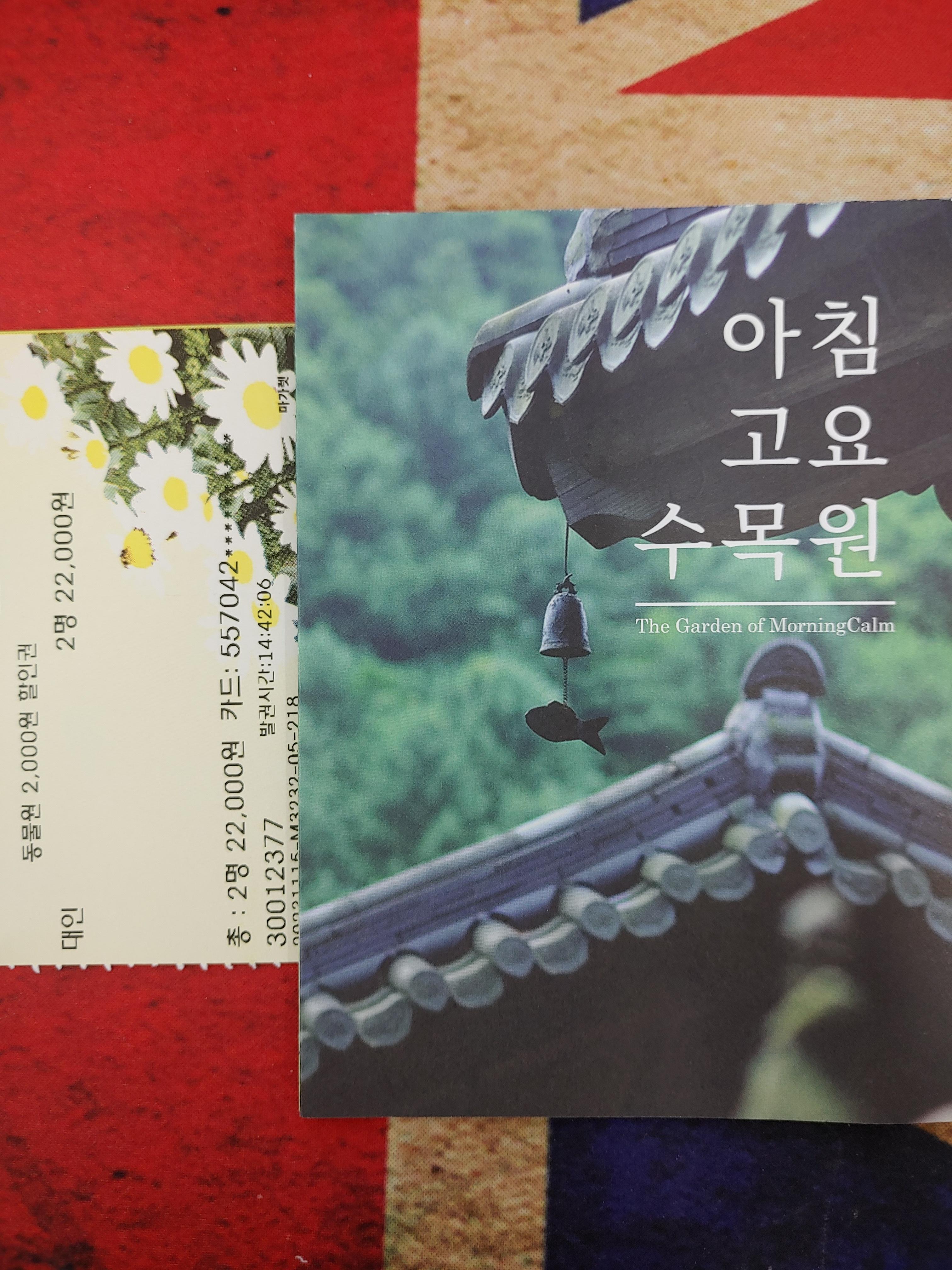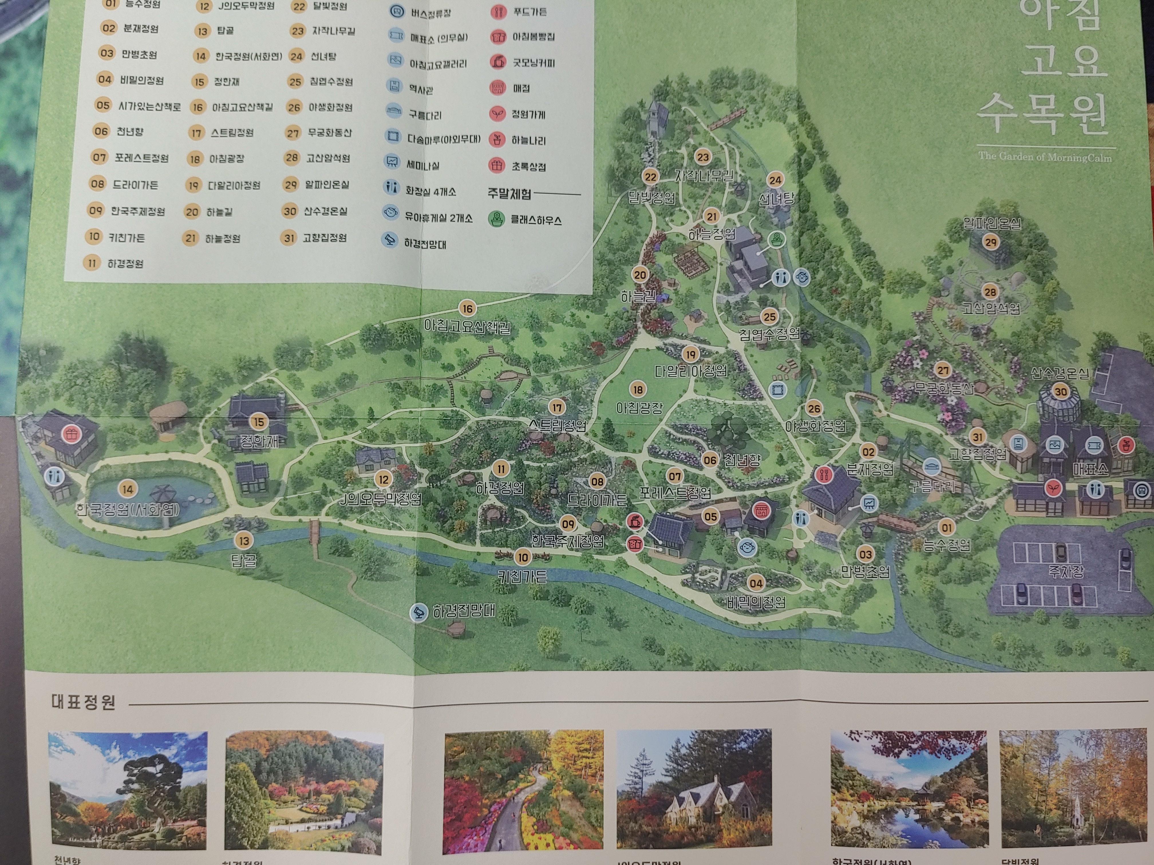 표랑 아침고요수목원에 대한 팸플릿이 있고 안에 지도로 상세히 설명되어 있습니다.