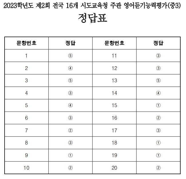 ※ 2023년 제2회 중3 영어 듣기 능력 평가 문제지 풀어보기