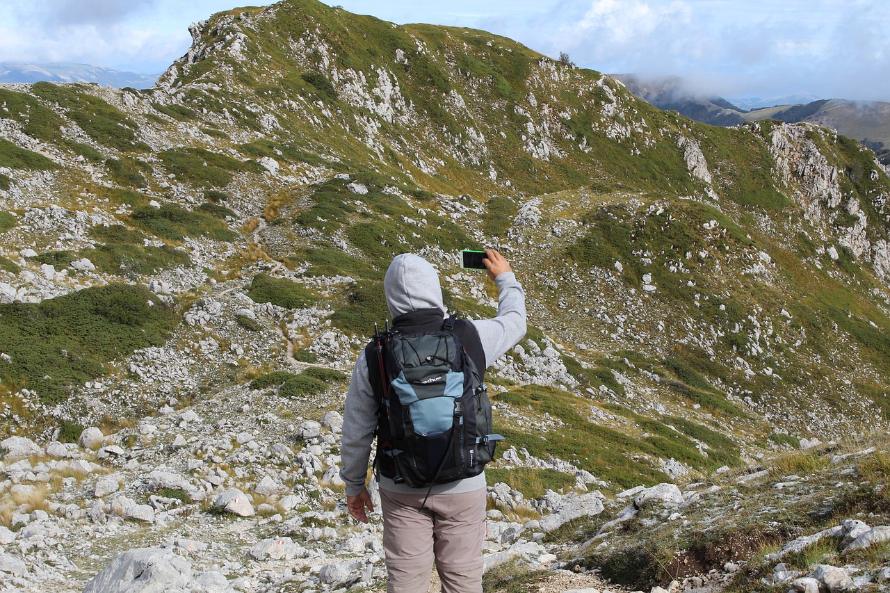 Jake finds a great spot to take a photo with the rock and gives Yuna his smartphone.
